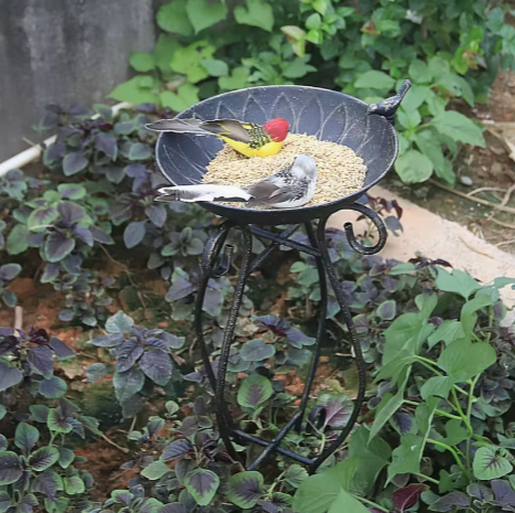 Dekoratīva un praktiska barotava savvaļas putniem, lieliski piemērota dārzam, pagalmam vai terasei. Stabils metāla statīvs ar elegantiem elementiem nodrošina izturību, bet plata bļodas formas paplāte ļauj ērti ievietot sēklas, graudus vai citu barību. Barotava ne tikai piesaistīs putnus, bet arī kalpos kā skaista dārza dekorācija.
